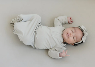 Oatmeal Organic Cotton Ribbed Knot Gown