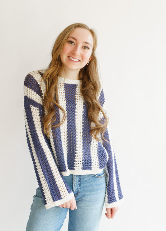 Striped Knit Sweater- Navy