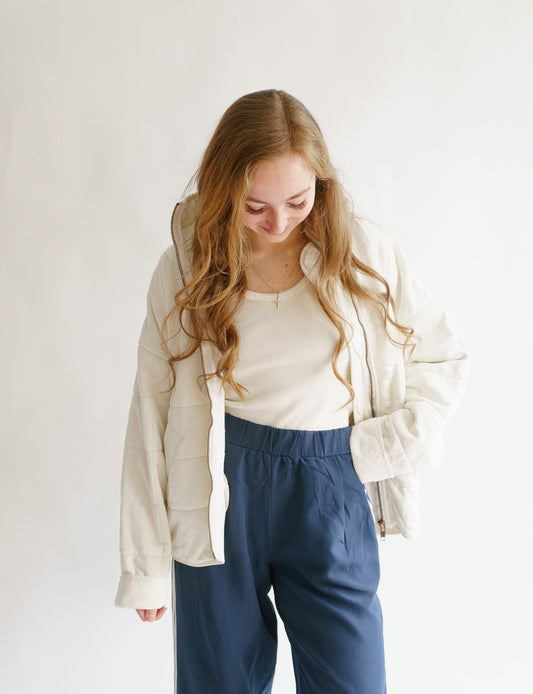 Quilted Knit Mineral Washed Jacket- Cream