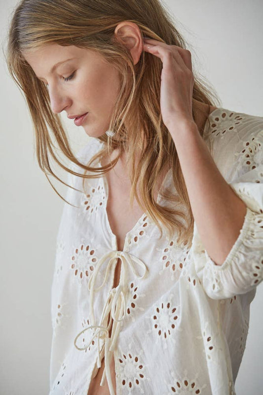 Eyelet V-Neck Tie Front Top